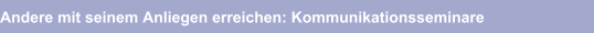 Der gelungene Austausch von Mensch zu Mensch ist das A und O für ein glückliches und erfolgreiches Leben. Das wünschen sich auch Ihre Teilnehmer! Christa Gerwing vermittelt ihnen die Grundlagen der zwischenmenschlichen Kommunikation mit íhren zahlreichen Facetten. Je nachdem, für welchen Bereich und für welche Zielgruppe genau das Seminar sein soll, stellt sie die Inhalte für Sie zusammen.